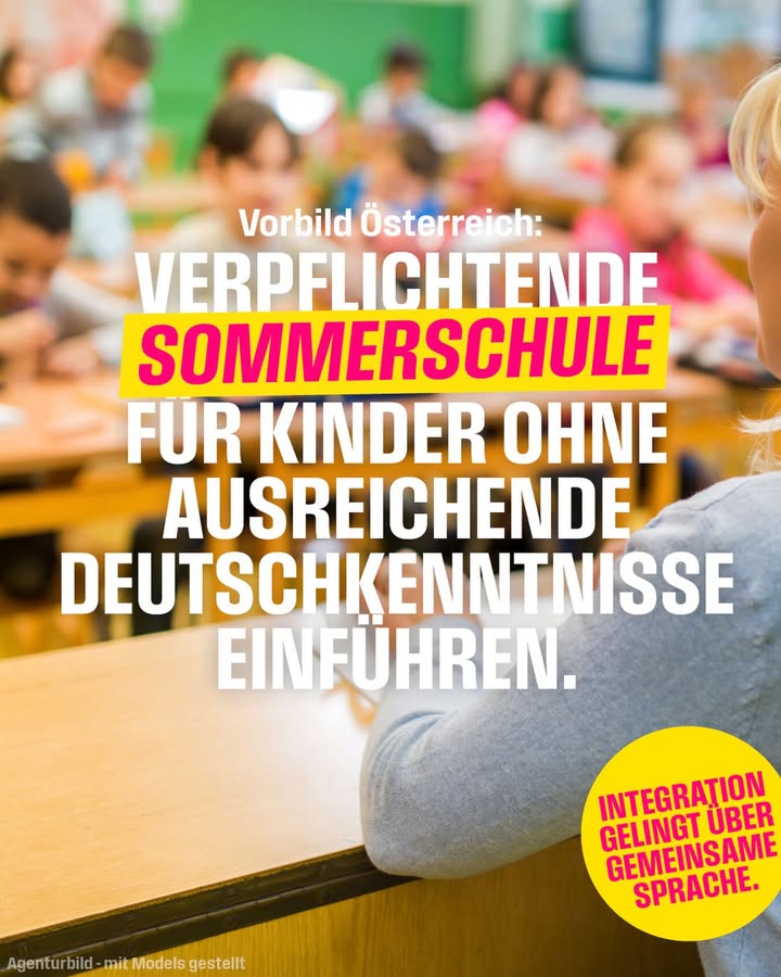 Deutschland muss, genau wie Österreich, für Schulkinder, die keine ausreichenden Deutschkenntnisse haben, eine verpflichtende Sommerschule einführen. Eine solche gezielte Ferienverkürzung muss in allen 16 Bundesländern stattfinden. Denn gute Deutschkenntnisse sind die Grundlage für Integration, echte Teilhabe und reale Aufstiegschancen für Kinder. Mehrsprachiges Aufwachsen ist eine Bereicherung – doch in der Realität werden noch immer zu viele Kinder eingeschult, die am Ende keine Sprache wirklich gut beherrschen. Eine vielfältige Gesellschaft braucht jedoch eine gemeinsame Sprache.