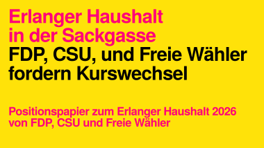 Wir, die Freien Demokraten Erlangen, lieben unsere Stadt! Wir empfinden es als Privileg, in Erlangen leben, wohnen und arbeiten zu dürfen. Dies liegt zuvorderst an dem besonderen Flair und Lebensgefühl, welches jeder kennt, der in dieser Stadt lebt. Diesen einzigartigen Charakter Erlangens zu wahren und gleichzeitig maßvoll weiter zu entwickeln, ist das fundamentale Anliegen der Erlanger FDP.