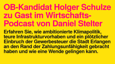 Seit jeher garantiert in Erlangen die FDP einen umsichtigen Umgang mit dem Geld der Bürgerinnen und Bürger, auch wenn die Zinsen wieder steigen und die Kassen leerer sind. Erlanger Unternehmen, von Siemens bis zum Start-Up, sind unsere Partner und keine Gegner. Für Gründer wollen wir zeitnah einen One-Stop-Center, das erste Schritte begleitet. Um die Zentrale von „Siemens Energy“ muss sich die bayerische Staatsregierung endlich ernsthaft bemühen.