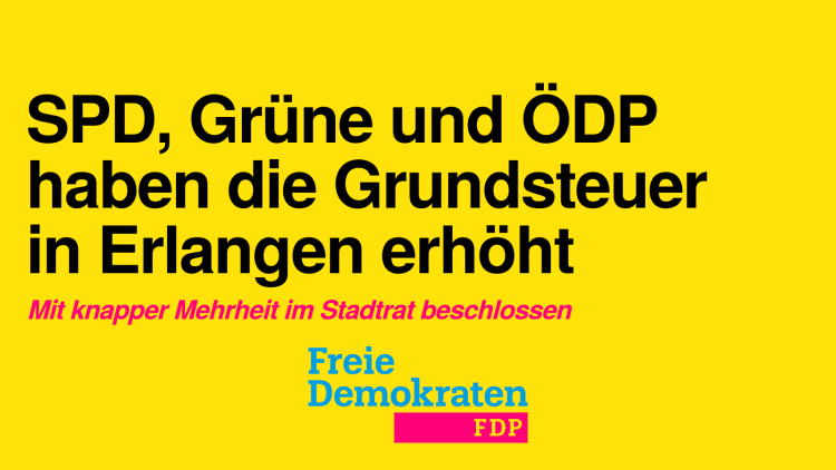 Mit hauchdünner Mehrheit haben in der gestrigen Stadtratssitzung SPD, Grüne und ÖDP die Grundsteuererhöhung, die der Stadtrat im Rahmen des Haushaltskonsolidierungskonzeptes eigentlich bereits abgelehnt hatte, doch noch beschlossen. Sie belegen damit einmal mehr die Diskrepanz zwischen Sonntagsreden und Podiumsbeiträgen, in denen sie sich gerne für eine Stärkung der Erlanger Wirtschaft aussprechen, und dem konkreten Handeln im Stadtrat.