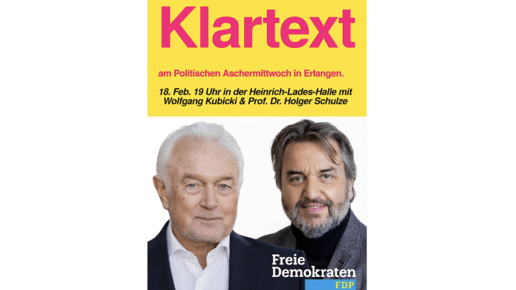 Wir laden Sie herzlich zum Politischen Aschermittwoch der Freien Demokraten mit Wolfgang Kubicki, Vizepräsident des Deutschen Bundestages a.D., sowie unserem Oberbürgermeister-Kandidaten Prof. Dr. Holger Schulze ein.